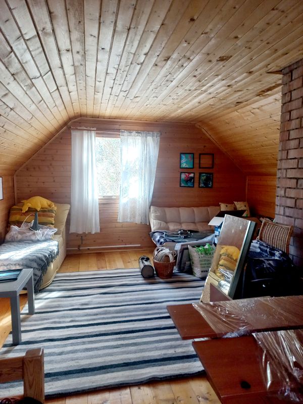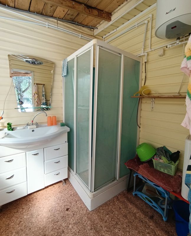 Планировка: на первом этаже кухня и две комнаты, на втором этаже одна большая комната. К дому пристроено помещение с душевой.